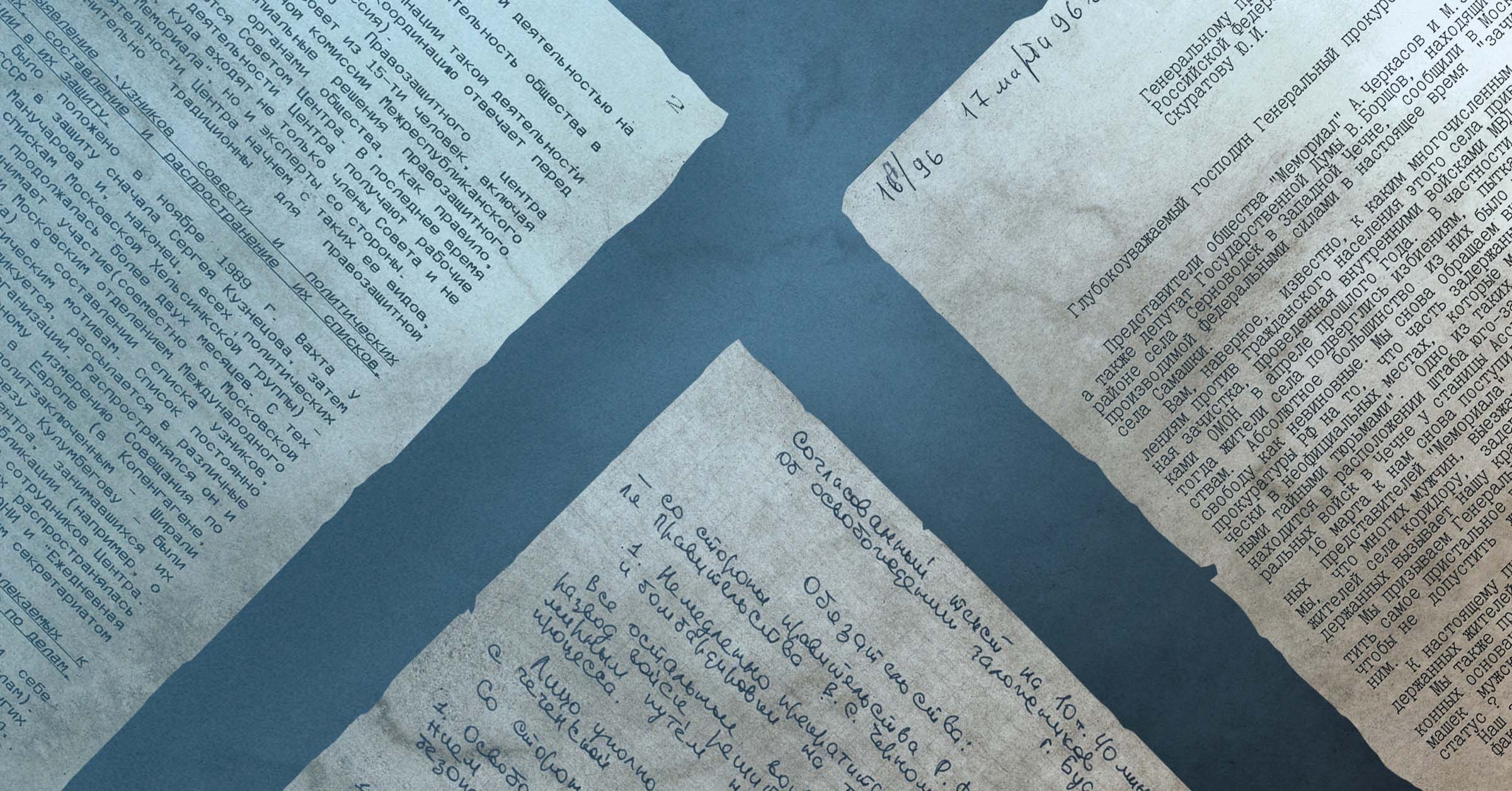 Здесь мы публикуем материалы о работе Правозащитного центра «Мемориал» в прошедшие десятилетия. Каждая командировка, правозащитная экспедиция, судебный процесс приносили документы, которые затем легли в основу нашей архивной коллекции.