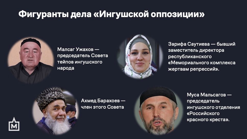 - Малсага Ужахова — председателя Совета тейпов ингушского народа;